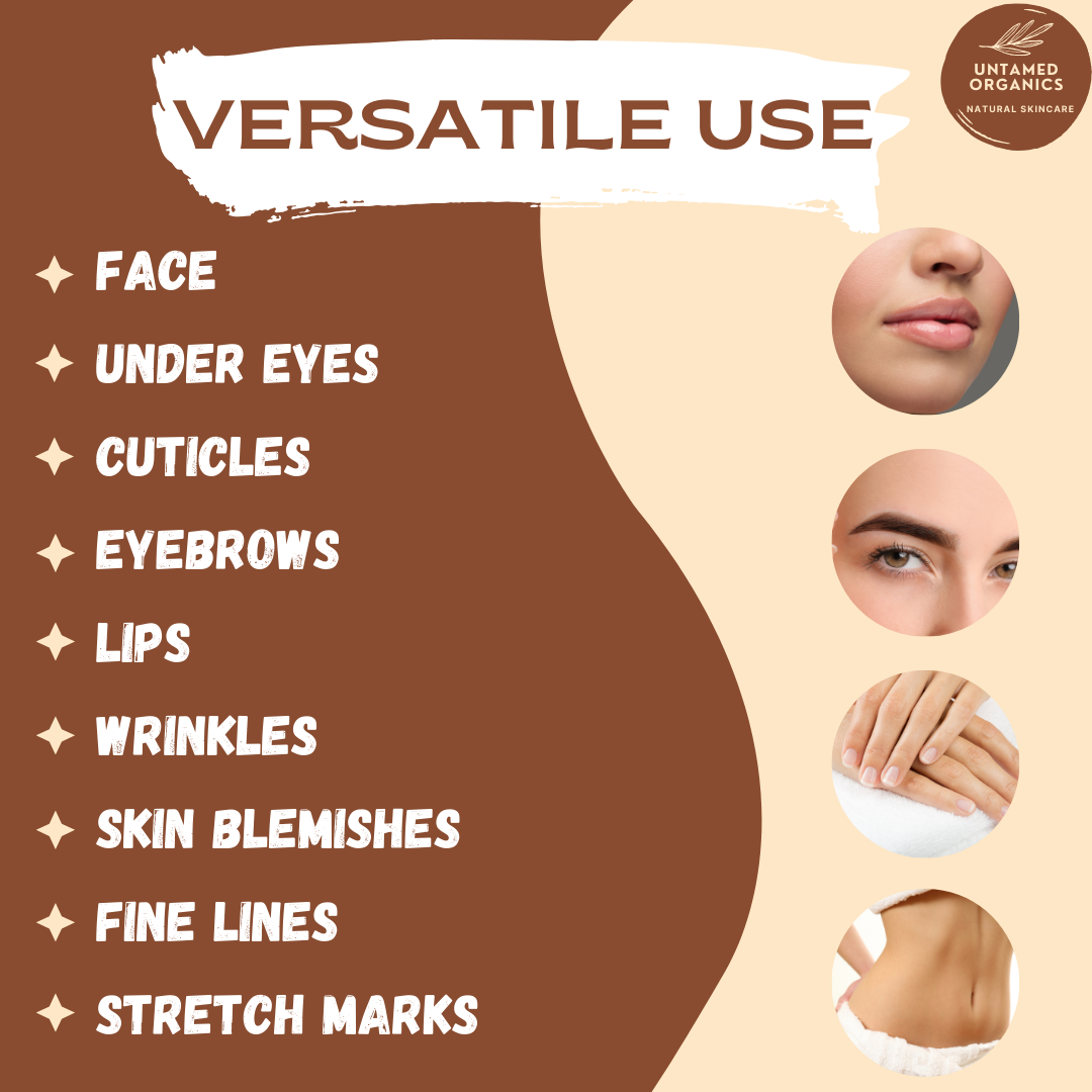 Made with only two high-quality, natural ingredients: * Cold-Pressed Castor Oil Sourced from trusted farms, our castor oil is cold-pressed to retain its potent nutrients and benefits. Rich in fatty acids and vitamin E, it deeply hydrates and soothes the skin while promoting natural healing and rejuvenation.