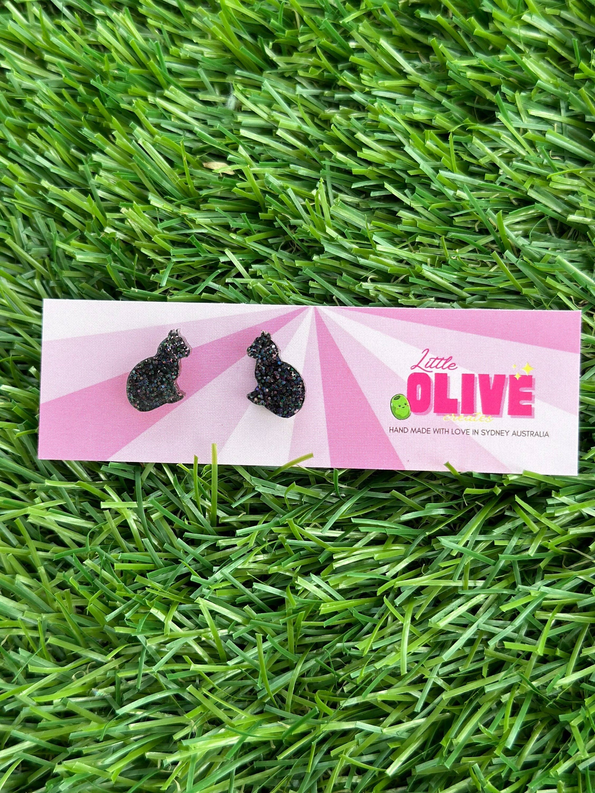 glittery black cat earrings
